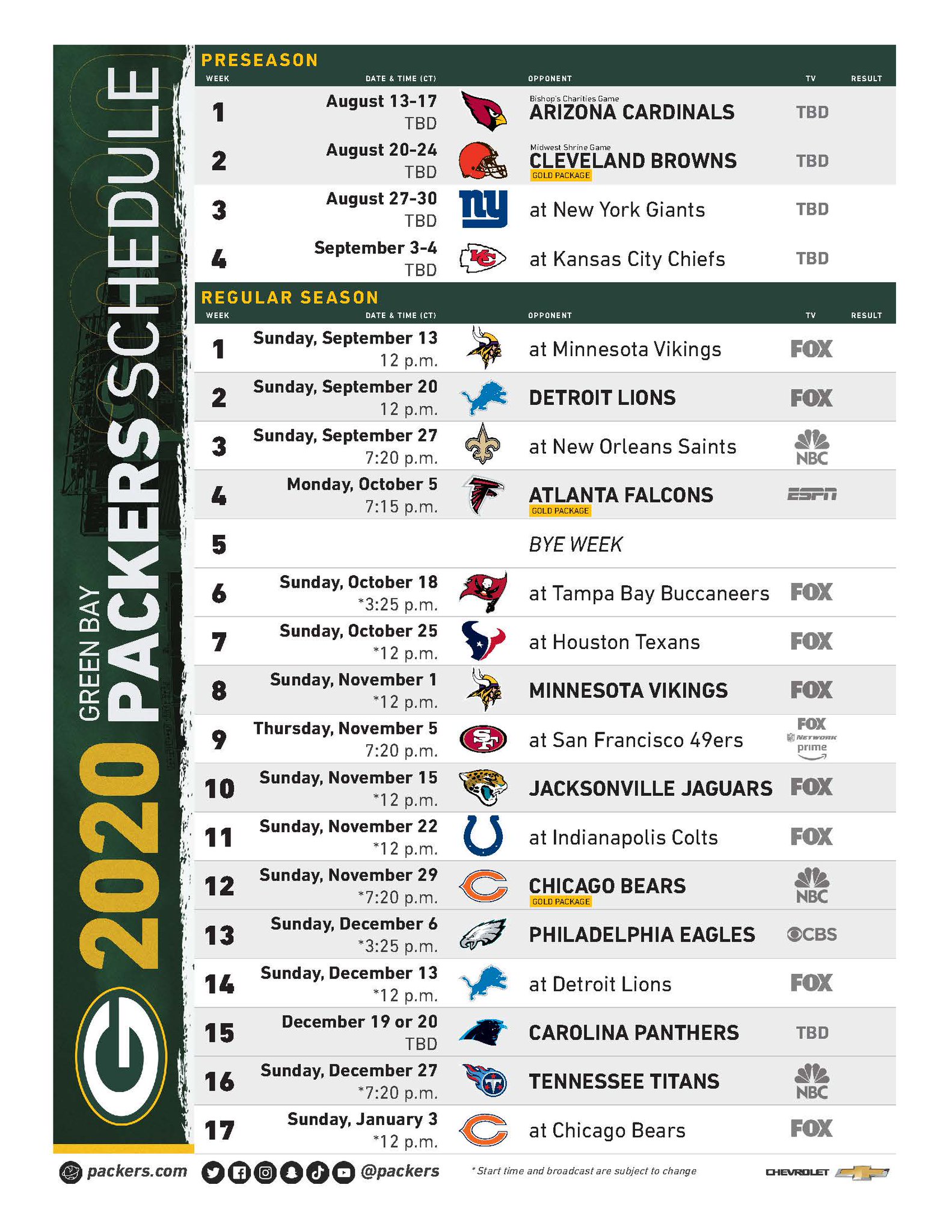 Green Bay Packers On Twitter Print Your 2020 Packers Schedule Https T Co Xl5vio4bxu Gopackgo