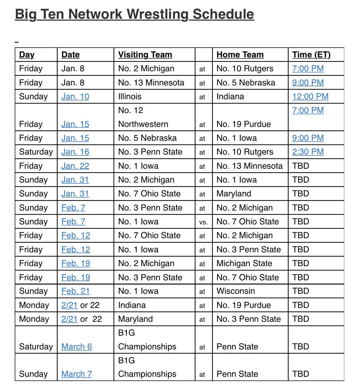 Big Ten 2021 Wrestling Schedule Finally Released Yay Black Shoe Diaries